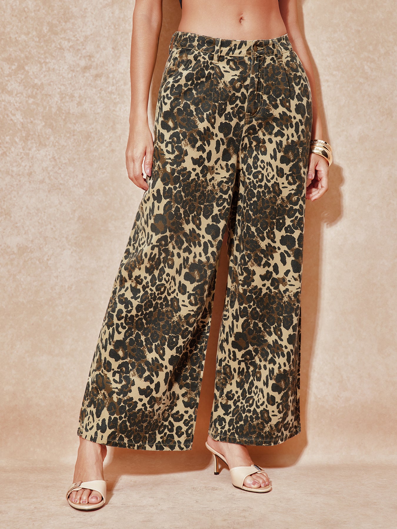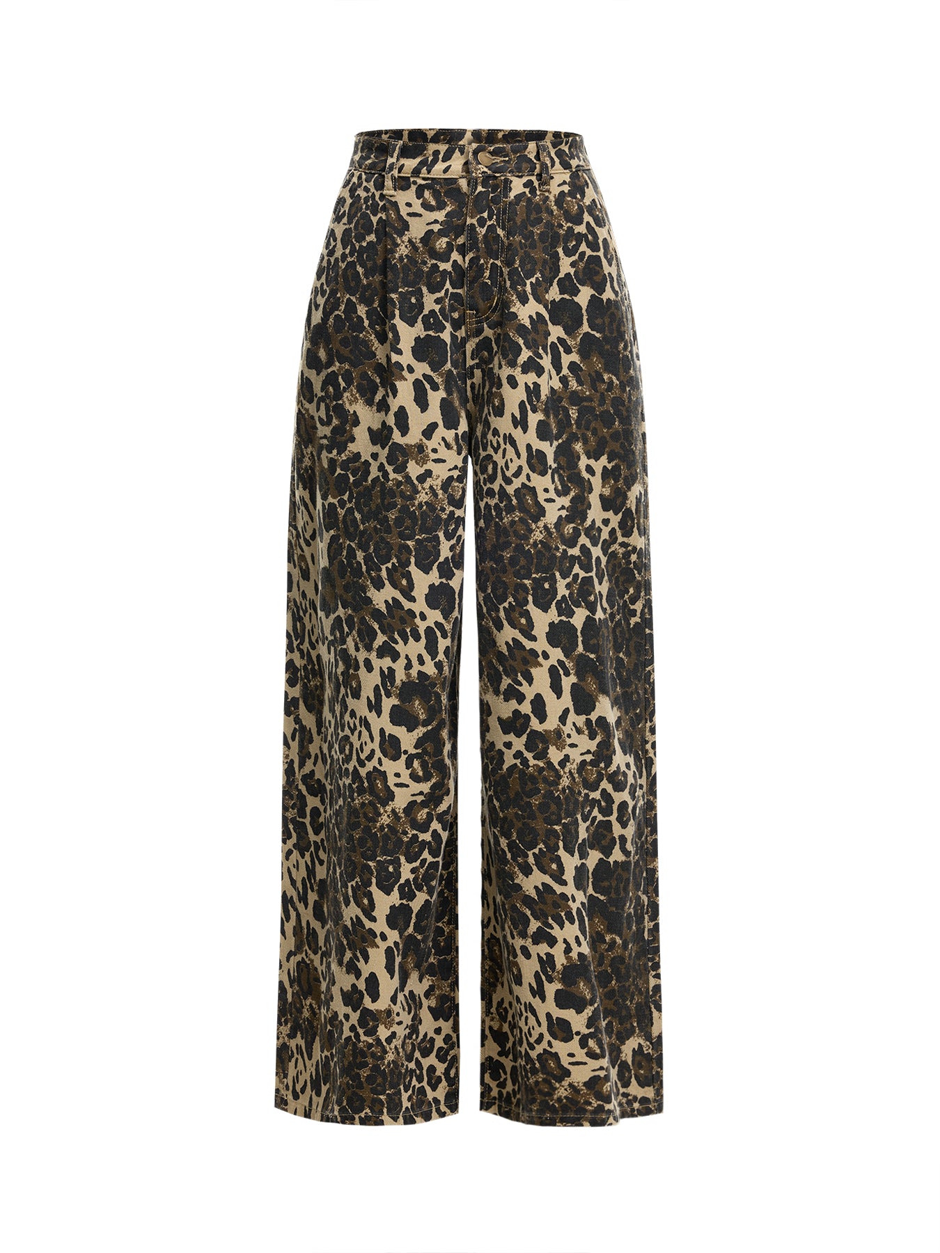 Baggy lässige Leopardendrucken lange Frauen Jeans